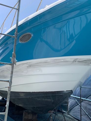 Work on bottom, blisters, fiberglass repairs, cleaning, polishing